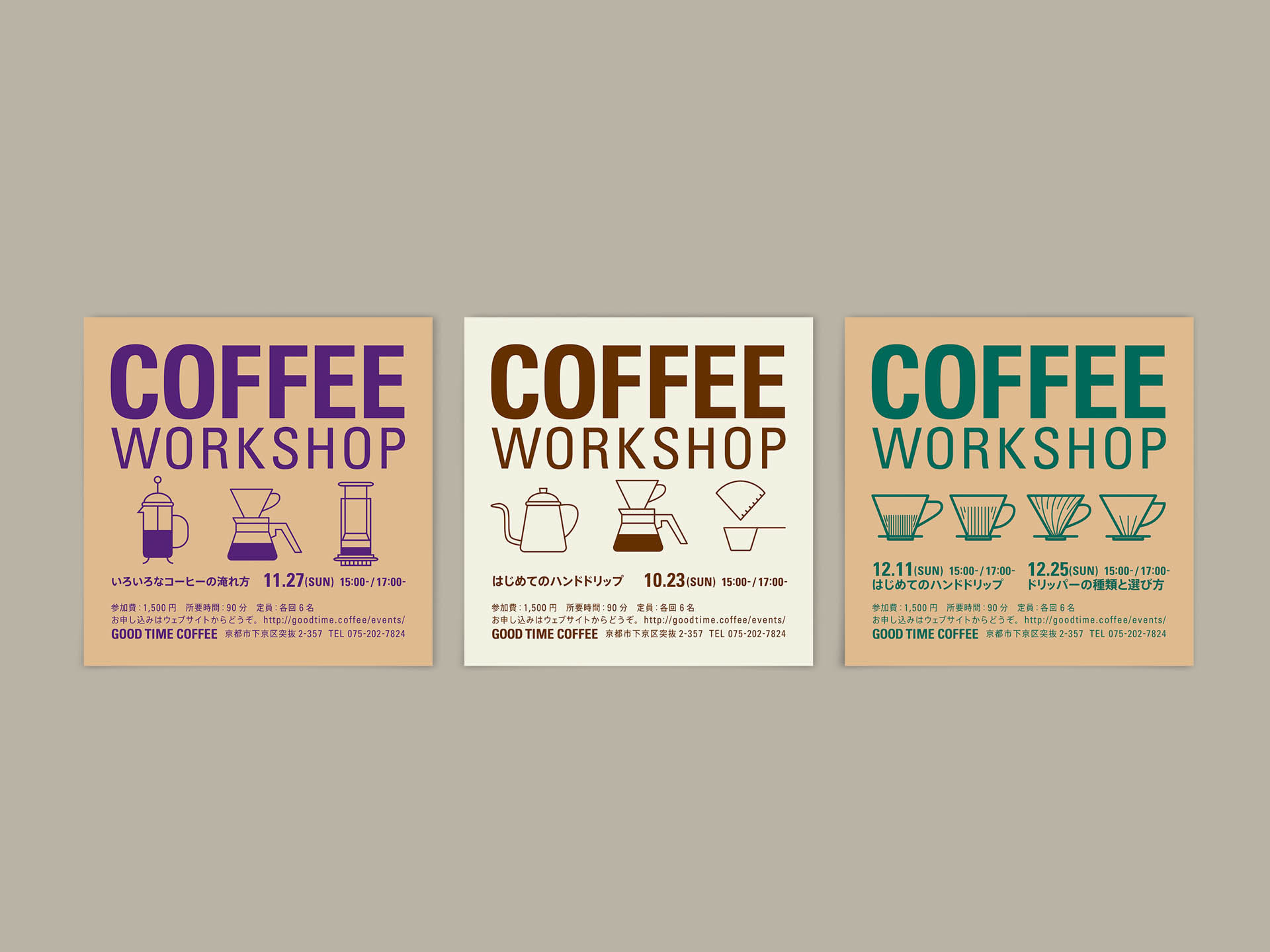 ハンドドリップ講座や飲み比べ会など、コーヒーに関するワークショップの企画。各会のチラシやガイドをデザインし、当日は司会進行を行った。