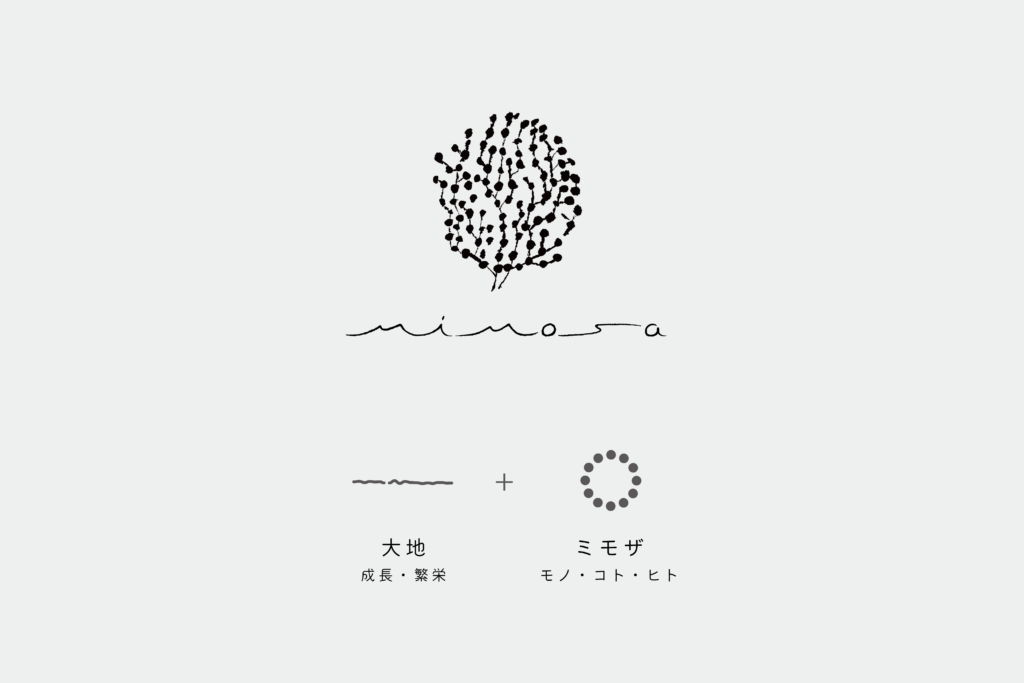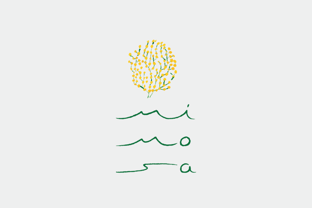 交流ひろば、食育キッチン、産後ケア、リラクゼーションなどママと子どものためのサービスがギュッと詰まった暮らしのサードプレイス、mimosaのロゴをデザインさせていただきました。