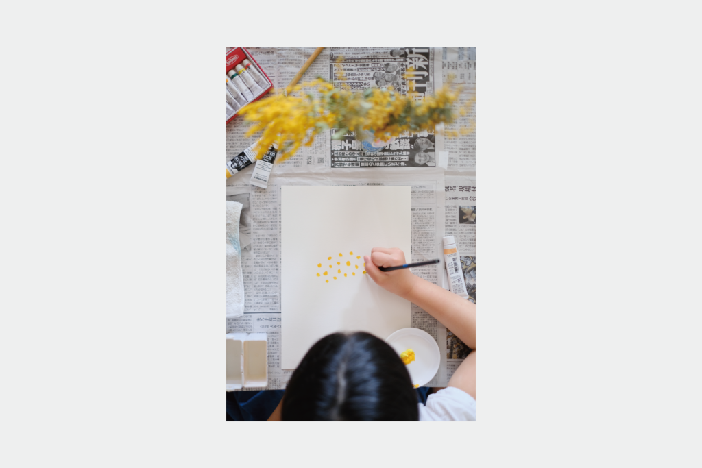 女性を象徴するミモザの花言葉「感謝、思いやり、安全」を表現する場にしたいとのご要望でした。わたしも母として考えさせられるところが多々あり、このロゴデザインは子どもと一緒に取り組むことに意味があると思い、当時小2の娘にミモザの絵を描いてもらいました。子どもならではの感性に任せることで、素直なラインが出て本当にやさしさを感じるマークになりました。文字のデザインはカフェのロゴっぽくすることで気軽にふらっと入ってきてもらえるような雰囲気に仕上げました。