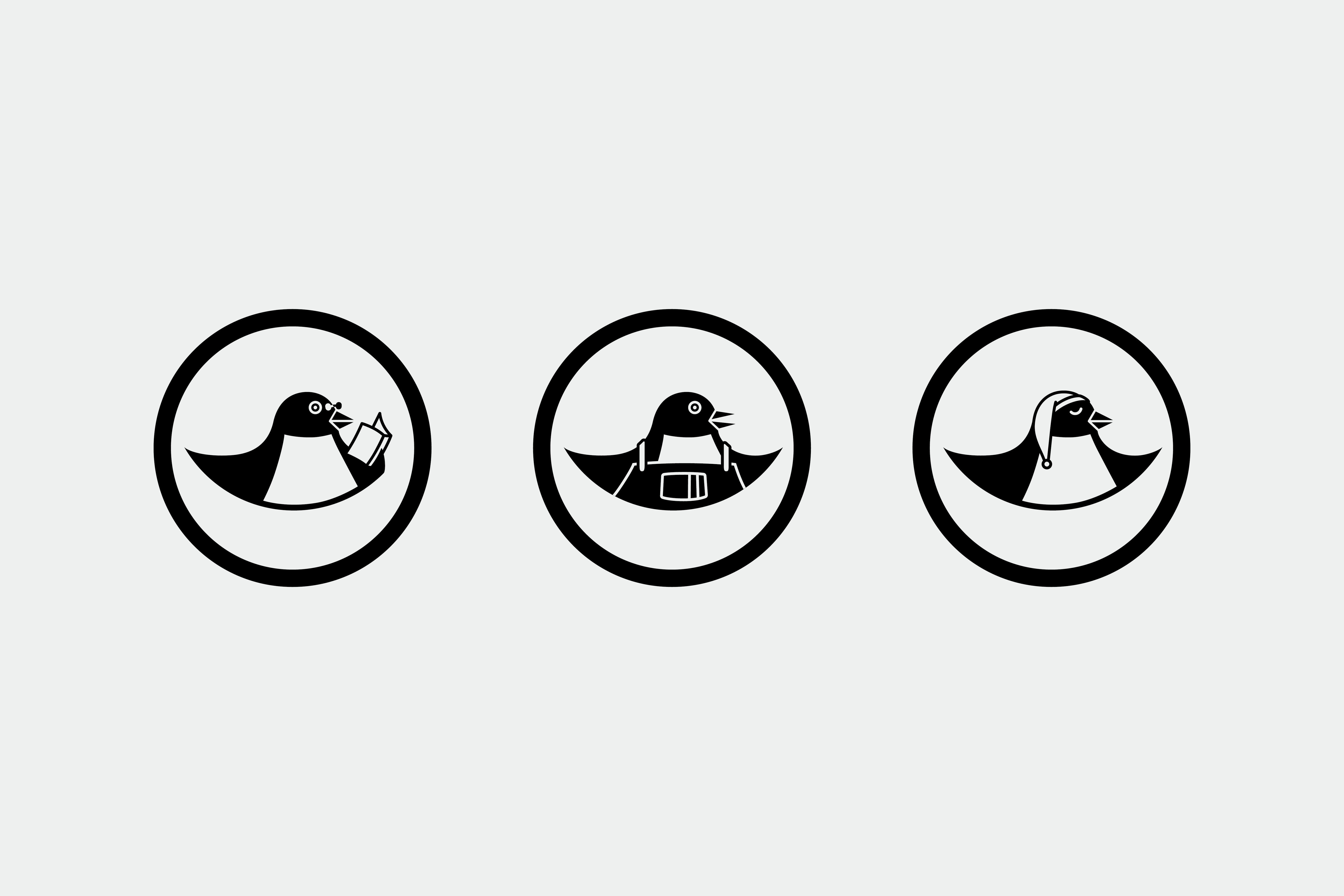 大家さんがペンギン好きということで元々の雁金という鳥の家紋からペンギンのデザインに変更。親しみがありつつ、威厳のある家紋ロゴになりました。