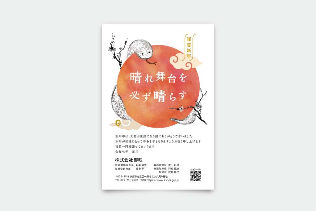 2025.01.08 2026.03.21 イラスト 年賀状グラフィック2025 Coffee2Design 京都にある株式会社響映さまの年賀状をデザインさせていただきました。中央の赤い丸は毎年使用している伝統デザインなので例年通りに配置。ウロコ模様はデザインの専門学生時代に描いた原画が蛇の柄にちょうど良かったので使用しました。 Client:株式会社響映 Category:イラスト 京都府京都市 prev next
