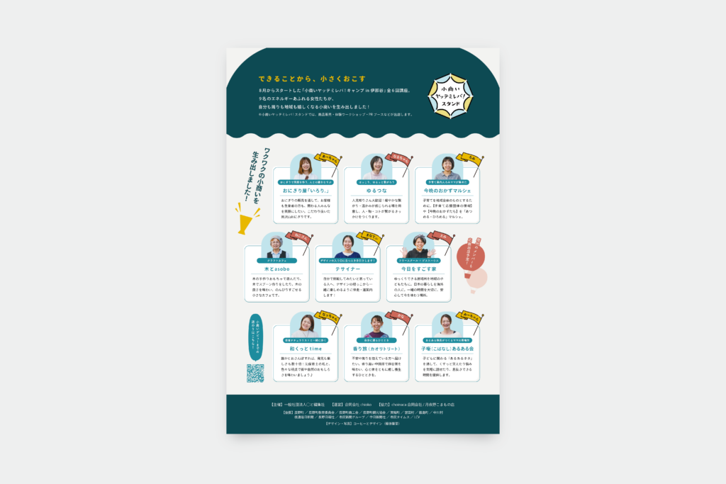 クライアントは、下諏訪町を拠点に小さく事業をスタートする連続講座「小商いヤッテミレバ!キャンプ」を運営する、合同会社chiokoさま。
